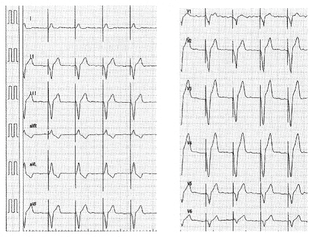 83歳女性の心電図を示す。