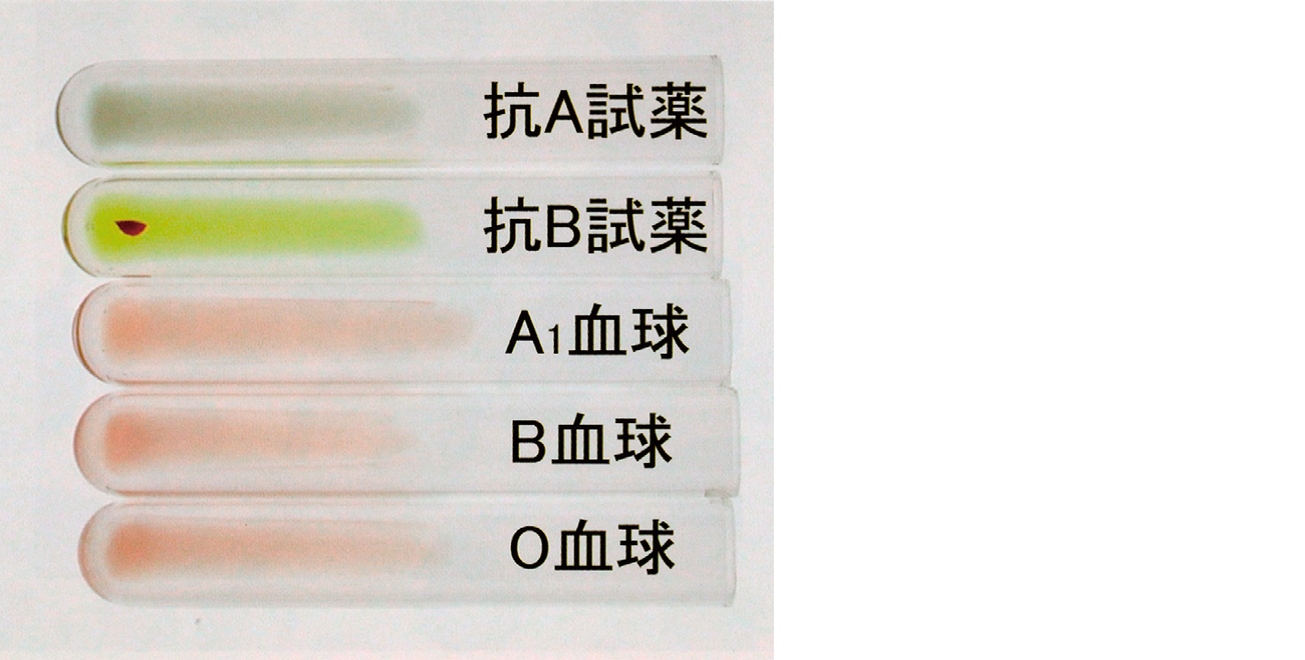 ABO 血液型検査を示す。考えられるのはどれか。