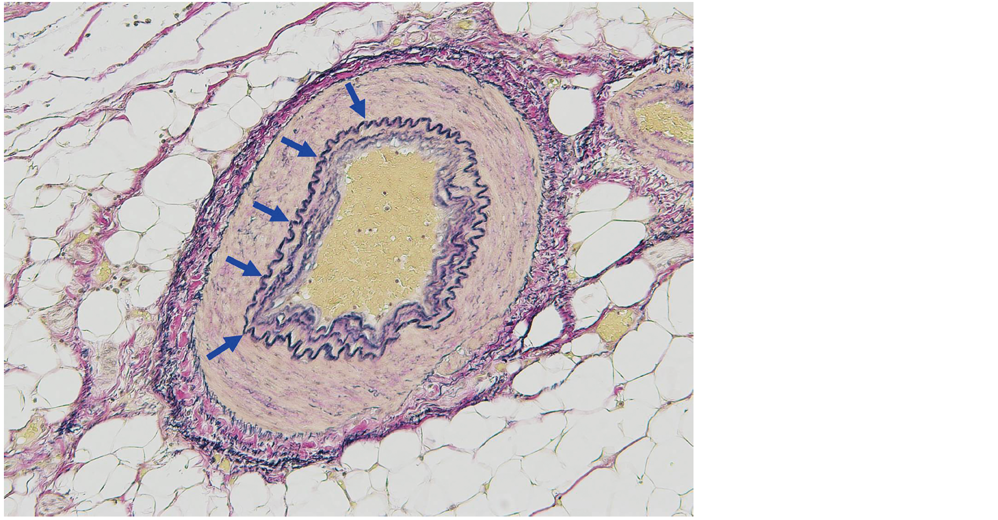 elastica van Gieson染色標本を示す。