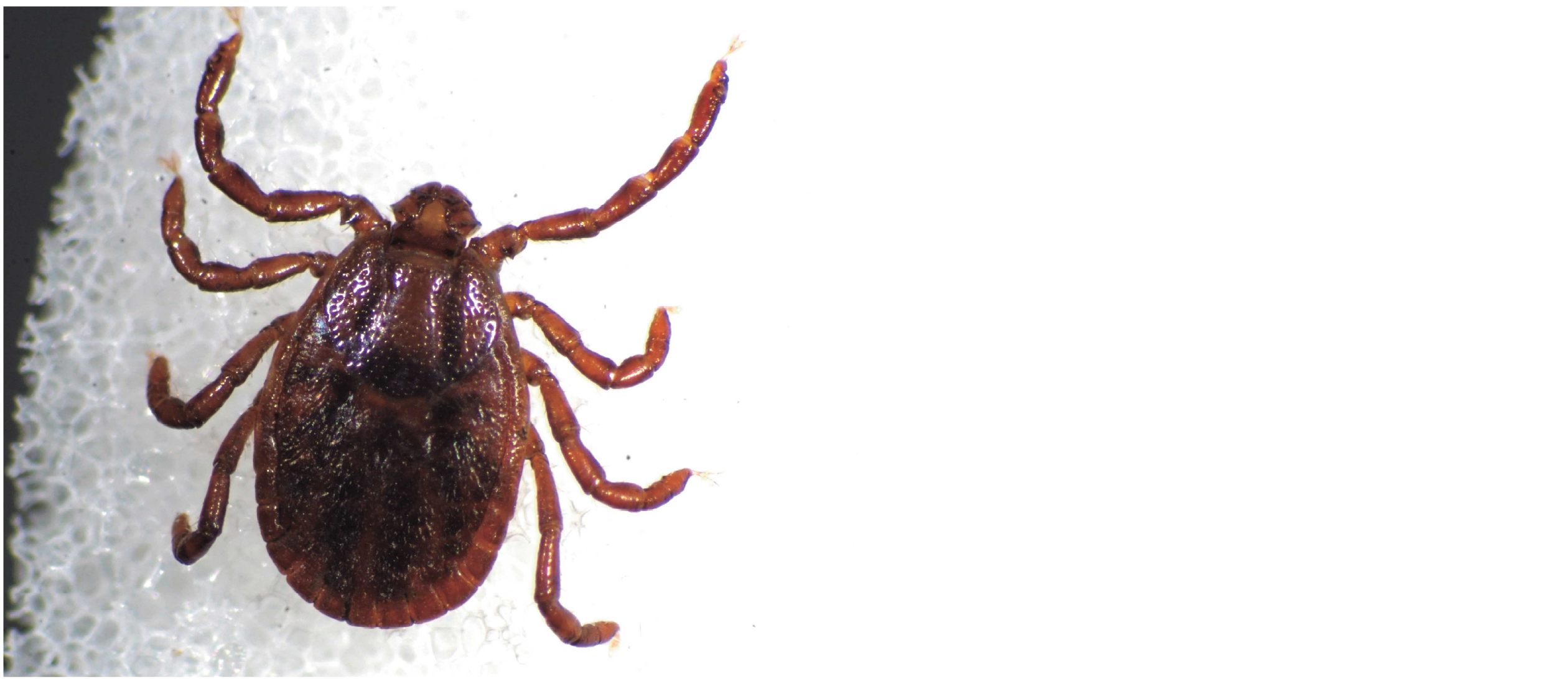 皮膚に付着していた虫体(体長2.5mm)の写真を示す。
