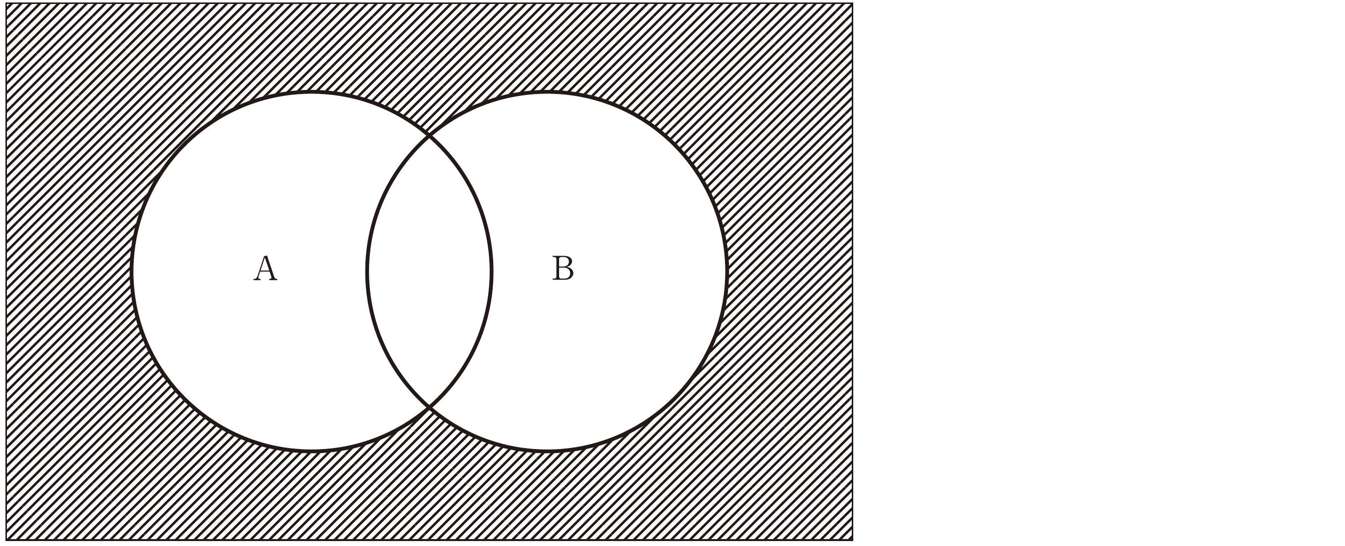 AとB の論理演算を模式化した図を示す。網掛け部分を示すのはどれか。