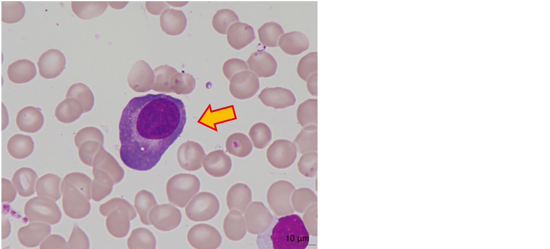 骨髄穿刺液のMay-Giemsa染色標本を示す。