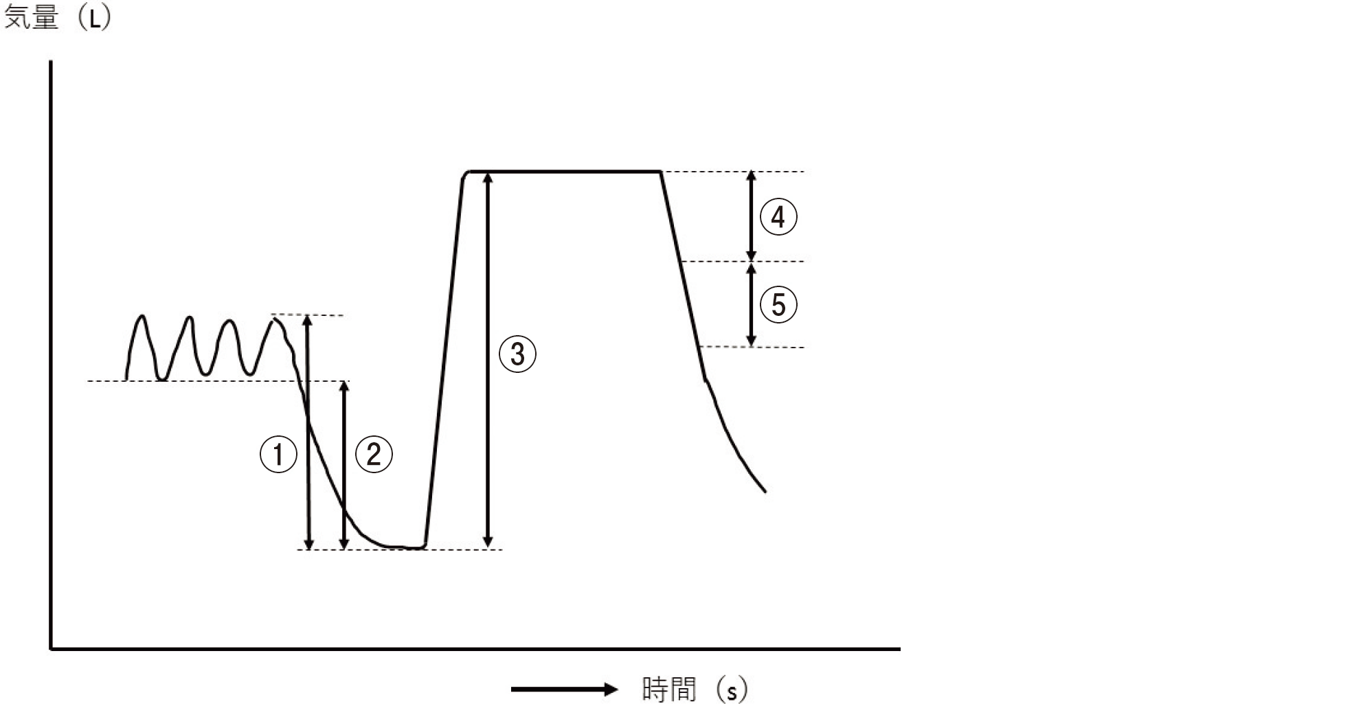 1回呼吸法による肺拡散能力測定のスパイログラムを示す。
