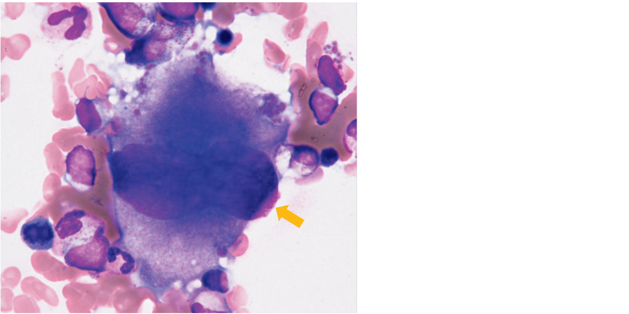骨髄穿刺液のWright-Giemsa染色標本を示す。