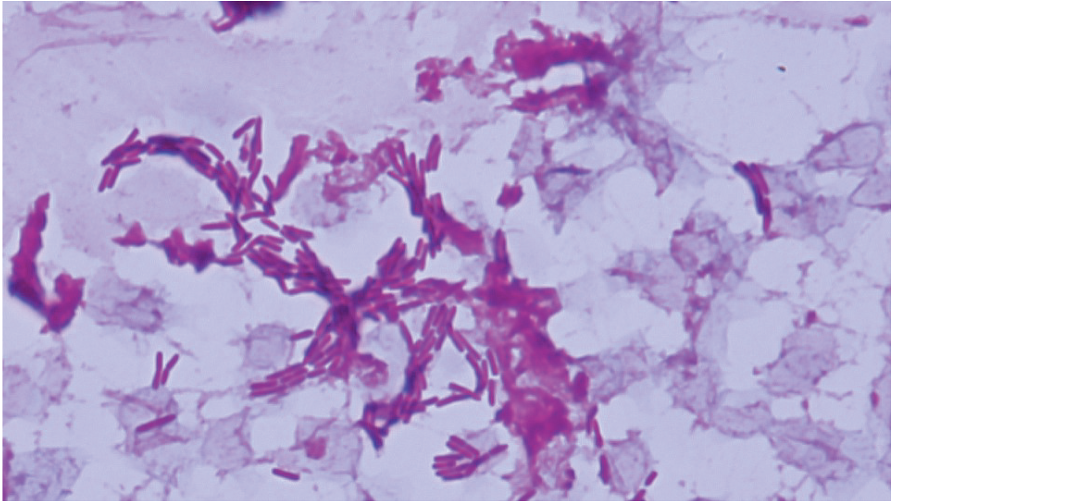 血液培養検査で培養陽性になった好気ボトル内容液のGram染色標本を示す。嫌気ボトルは培養陰性であった。分離菌はオキシダーゼテスト陽性であった。