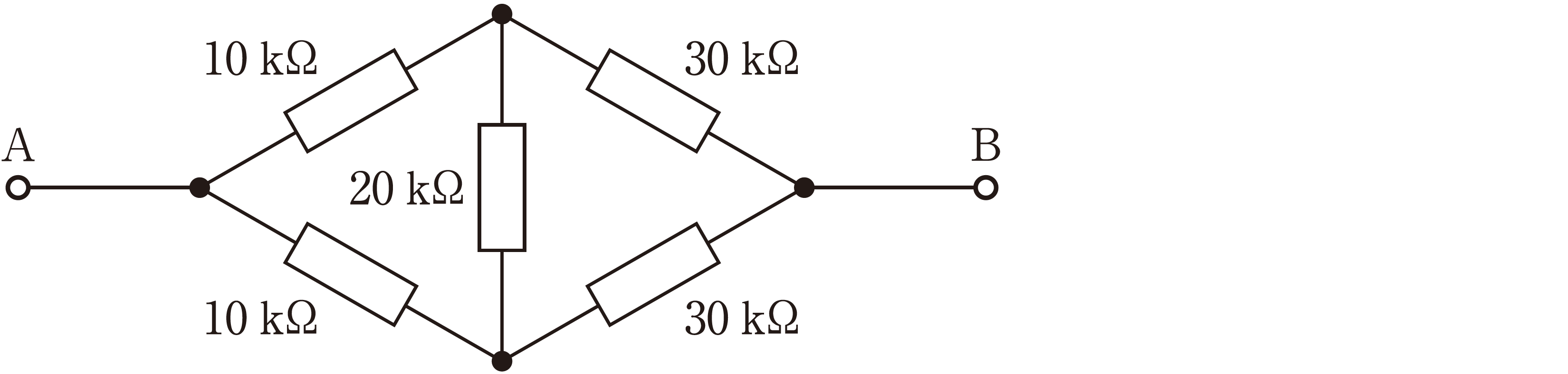 図の回路でA-B 間の合成抵抗[kΩ]はどれか。