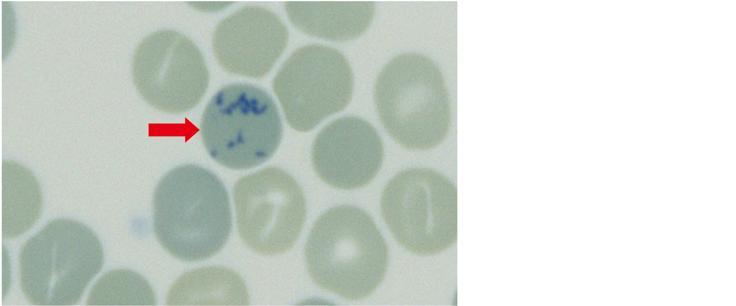 健常者の末梢血のニューメチレンブルー染色標本を示す。