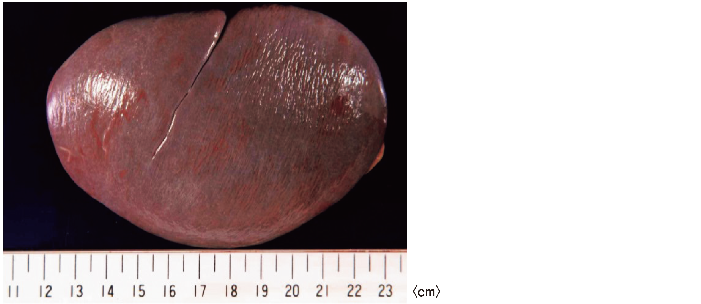 病理解剖時に摘出された臓器の肉眼写真を示す。
