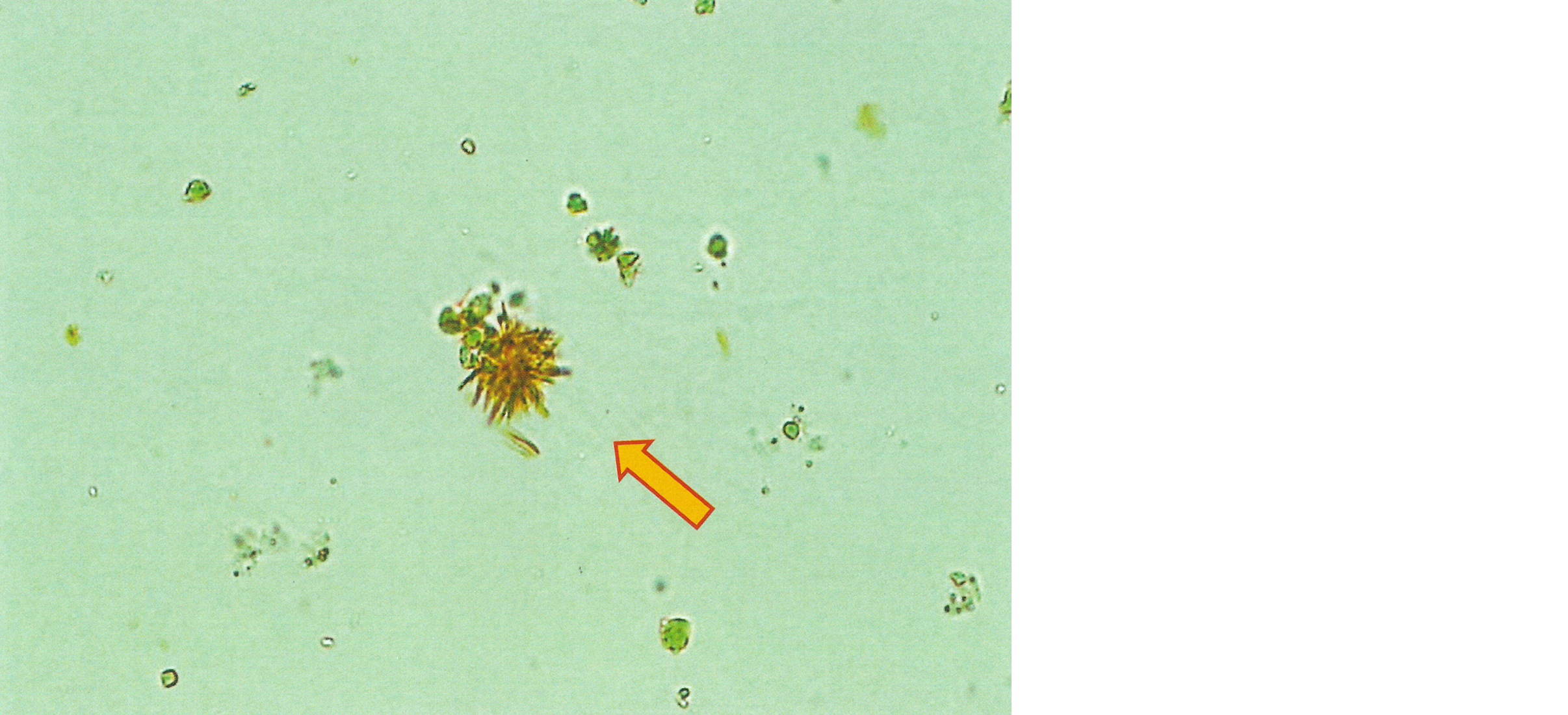 尿沈渣に認められた結晶を示す。
